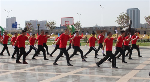 開幕式上由新眾城集團30名青年突擊隊員表演的軍體拳,動作整齊劃一、剛勁有力,將開幕式推向高潮。